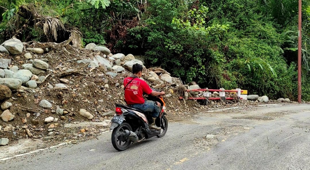 Menurut Rusdi Somad pengendara yang melintas, masih terlihat material longsor berupa bebatuan besar, tanah dan pohon besar, bertumpuk di sepanjang jalan lintas itu.