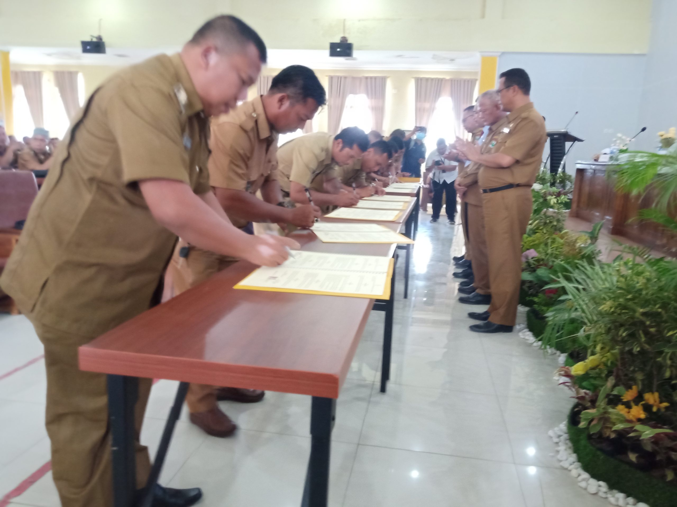 Kegiatan penandatangan kerja sama pendampingan di bidang hukum pada seluruh kades Se-kabupaten Muara Enim dengan kejaksaan negeri Muara Enim ini di helat di Aula pertemuan Pemdes Kabupaten Muara Enim, pada Selasa (7/3/2023).