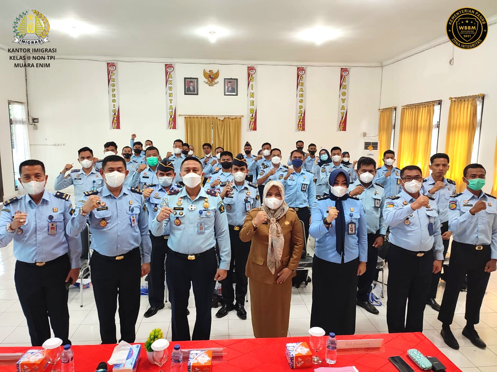 Sementara itu Kakanim Muara Enim Kemenkumham Sumsel, Made Nur Hepi Juniartha menyampaikan terima kasih kepada Kanwil Kemenkumham Sumsel yang sudah mendukung Kanim Muara Enim dalam meraih predikat UPT Ramah HAM.