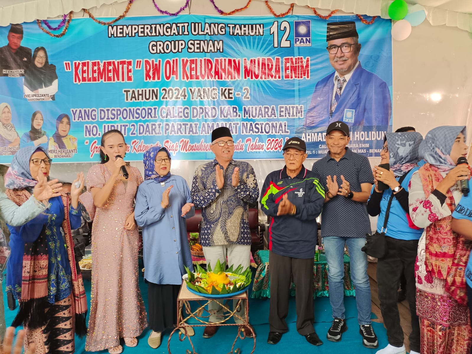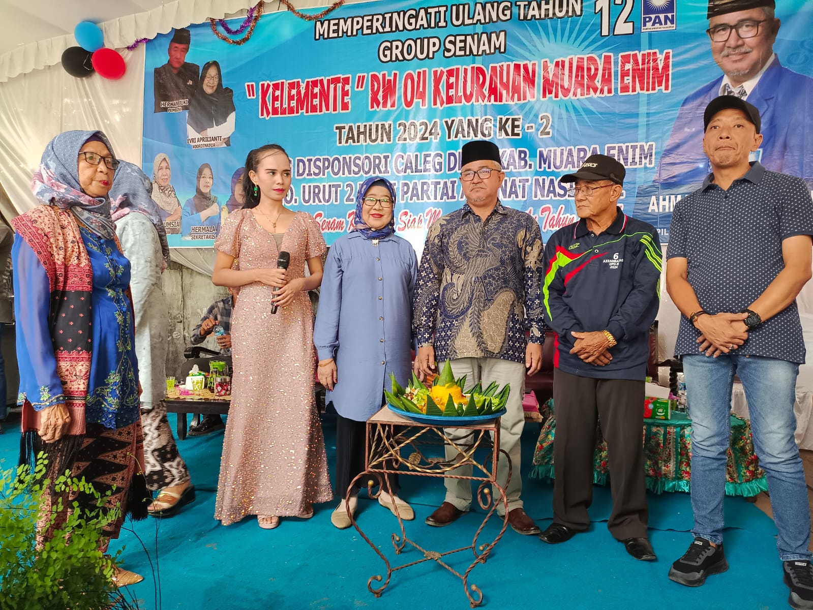 Hal ini diungkapkannya dalam acara Ultah Group Senam Kelemente RW 04 Kelurahan Muara Enim ke II di Kelurahan Muara Enim, Kecamatan Muara Enim, Kabupaten Muara Enim yang disponsori oleh salah satu Caleg Nomor Urut 2 dari PAN Dapil I, Ahmad Khozi Holidun.