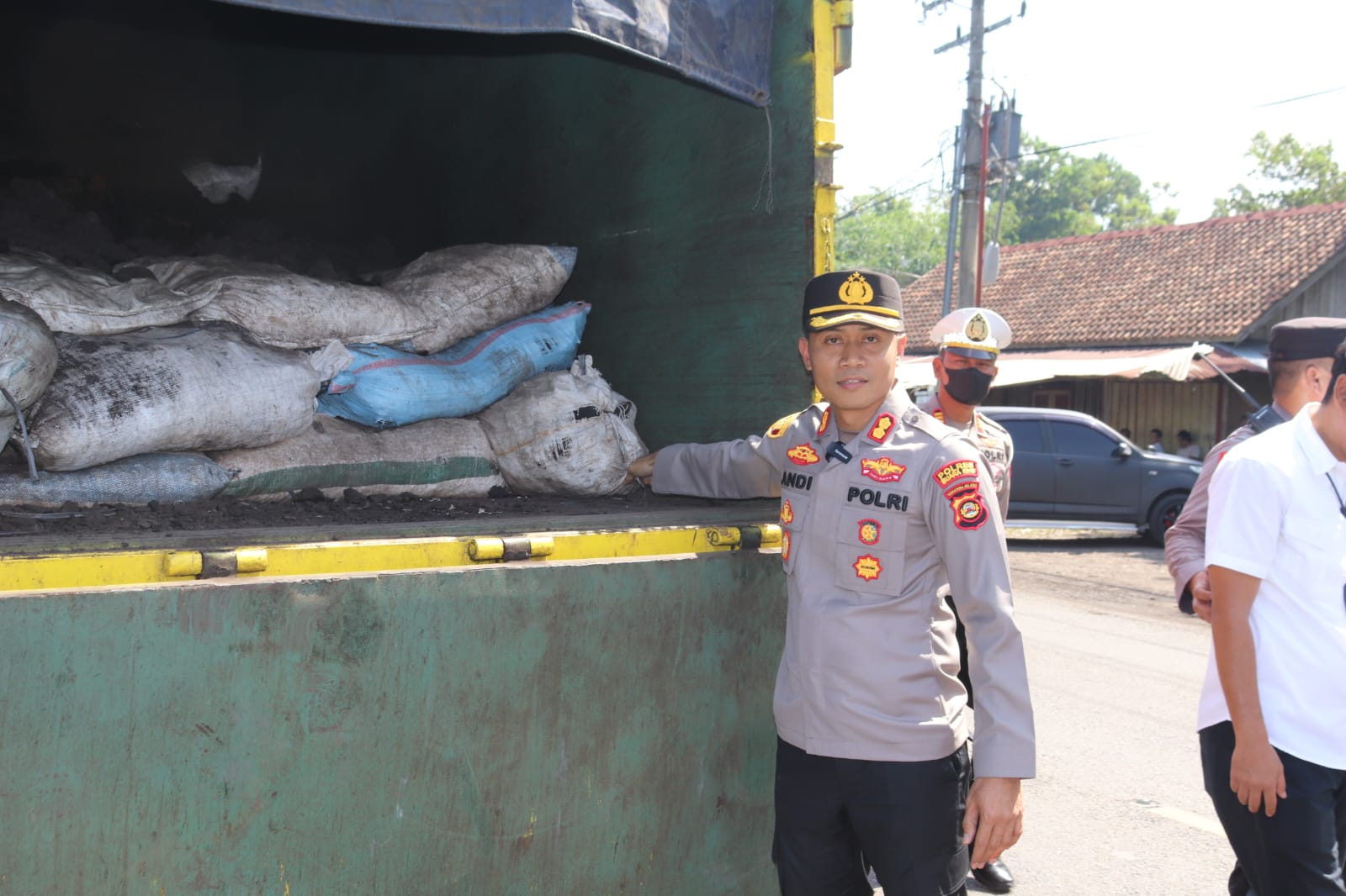 Kapolres Muara Enim AKBP Andi Supriadi, SIK mengelar konferensi pers dadakan didepan Pos Lantas Jembatan Enim II didampangi oleh Kabag Ops Kompol Toni Arman, Kasat Reskrim AKP Toni Saputra, Kasat Lantas AKP Suwandi terkait ungkap kasus pengangkutan batubara ilegal langsung di Jalan Trans Sumatera Lampung – Muara Enim, Rabu (31/5/2023).