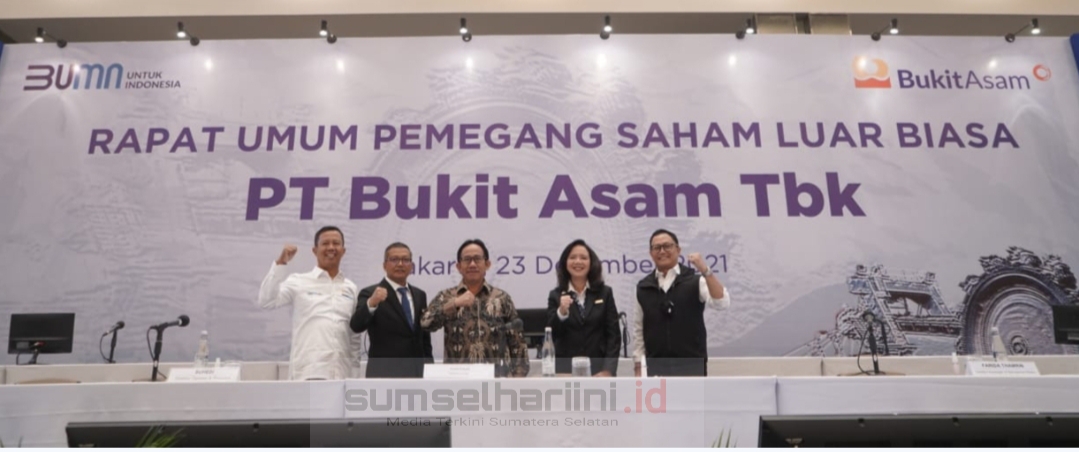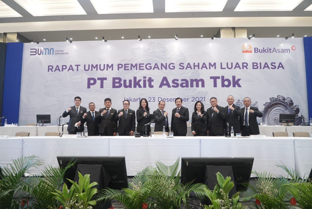 SHI.id| JAKARTA – PT Bukit Asam Tbk (PTBA) menggelar Rapat Umum Pemegang Saham Luar Biasa pada Kamis (23/12) di Jakarta. Kegiatan dihadiri pemegang saham secara fisik dengan memperhatikan kapasitas ruangan dan pemberian jarak serta dihadiri secara onllne menggunakan fasilitas Electronic General Meeting System (eASY) yang dikembangkan Kustodian Sentral Efek Indonesia (KSEI).