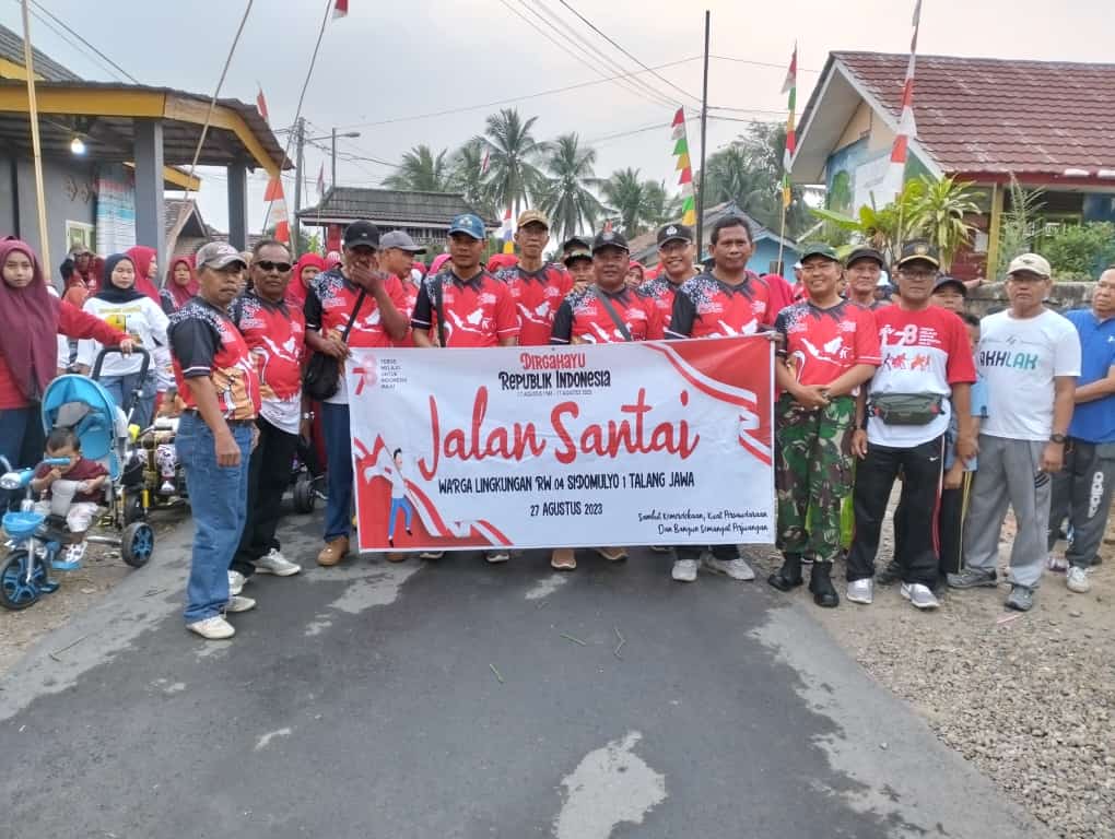 Komandan Koramil 404-05 Tanjung Enim Kapten Czi Sujarwo melalui Babinsa Serma Tanto mengatakan, menghadiri kegiatan undangan jalan santai bagi warga desa lingkungan binaanya RW 04 Sidomulyo 1 Talang Jawa Kelurahan Tanjung Enim tersebut merupakan dalam rangka memperingati HUT RI KE – 78 tahun.