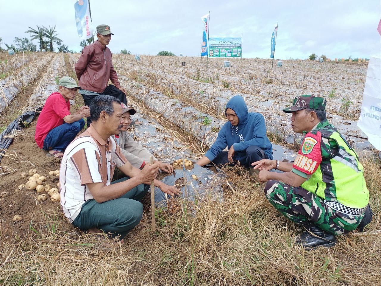 Sumsel hari ini.id – Dalam rangka mensukseskan program ketahanan pangan Babinsa Koramil 404-06/Semende Sertu Buyung gelar giat Komunikasi Sosial (Komsos) Penyuluhan Pertanian Lapangan (PPL) dengan kelompok tani jenis kentang di Desa Segamit, kecamatan Semende Darat Ulu, Sabtu (11/2/2023).