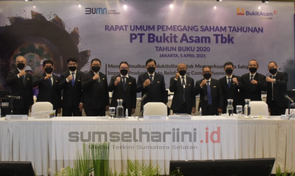 Rapat Umum Pemegang Saham PT Bukit Asam Tbk (PTBA) yang digelar, dengan tetap menerapkan protokol kesehatan.