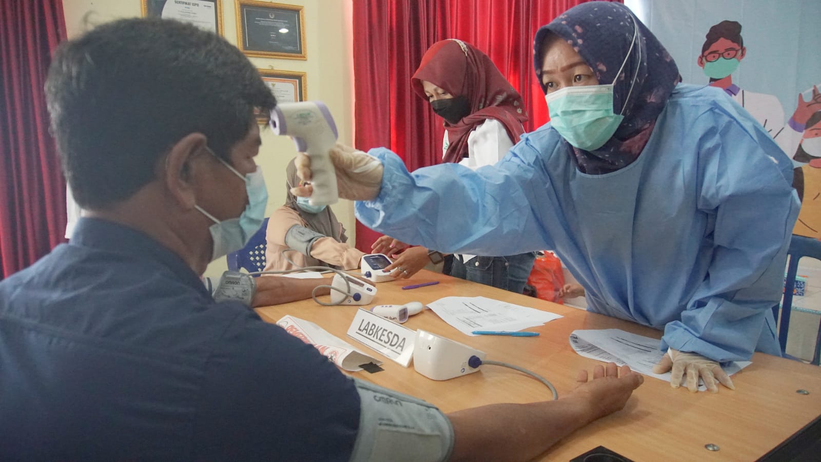 Ia mengatakan, semua para peserta yang turut vaksin diarahkan dari awal kita masuk keruangan lalu di cek kesehatan seperti tensi darah, suhu tubuh dan yang lain-lain.
