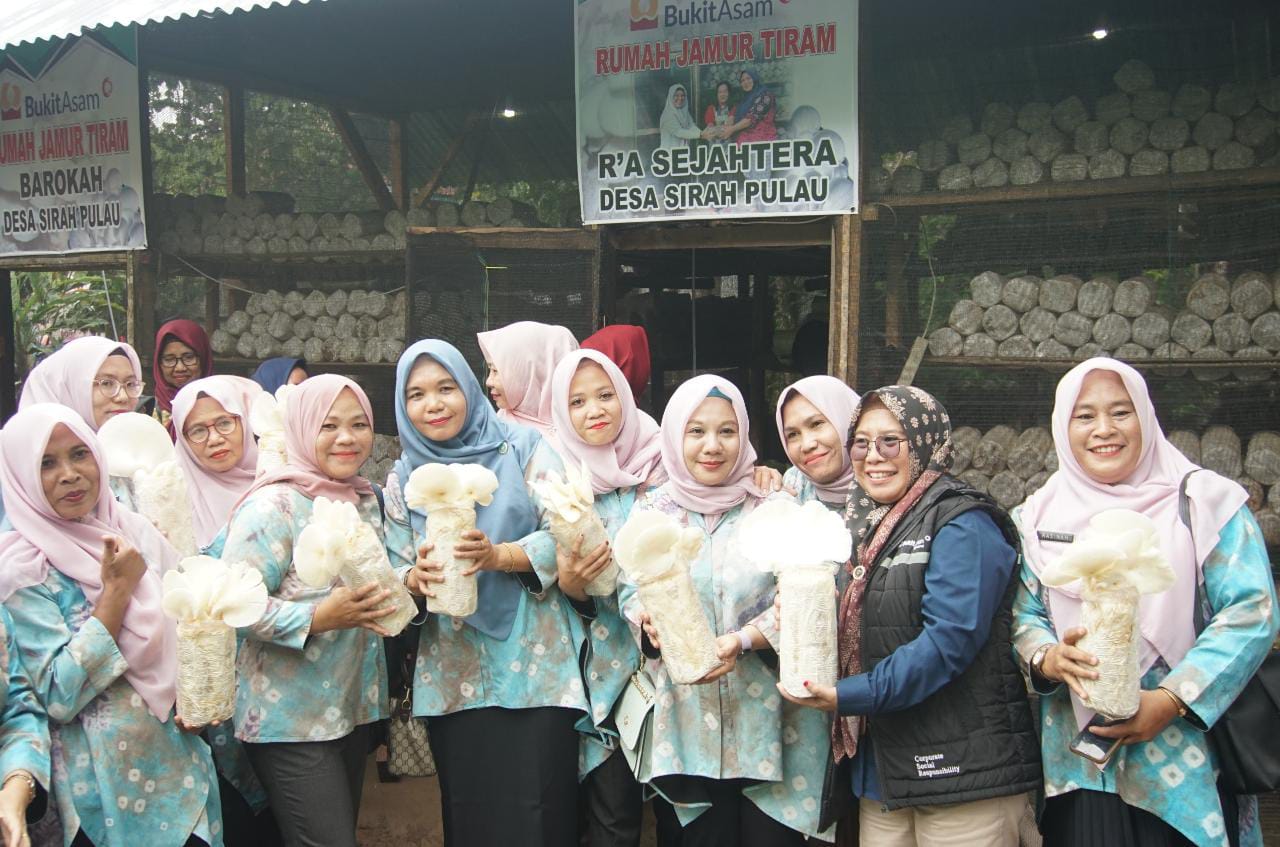 Sumsel hari ini.id – Para ibu rumah tangga di Desa Sirah Pulau, Kecamatan Merapi Timur, Kabupaten Lahat berhasil melakukan panen raya jamur tiram, di Lapangan Desa Sirah Pulau, Merapi Timur, Lahat, Rabu (1/2/2023). Mereka merupakan binaan Corporate Social Responsibility (CSR) PT Bukit Asam Tbk (PTBA).