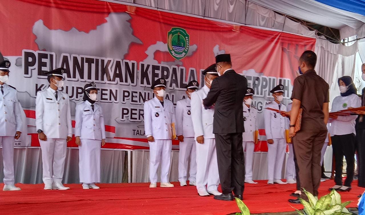 SHI.id|PALI – Bupati Kabupaten Penukal Abab Lematang Ilir (PALI), Ir H Heri Amalindo melantik secara resmi 12 Kepala Desa (Kades) terpilih. Pelantikan dihelat di Halaman Kantor Camat Talang Ubi, Rabu (29/12/2021).