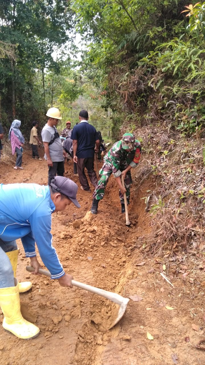 “Seperti kita ketahui, dimana saat ini sudah memasuki musim penghujan, maka dari itu kami secara berinisiatif bergotong royong melakukan pembuatan parit ini, supaya tidak terjadi adanya genangan air di jalan, sehingga masyarakat pengguna jalan tidak terganggu akibat adanya genangan air pada saat hujan tiba,” ujarnya Babinsa Kopda Aris kepada media ini.
