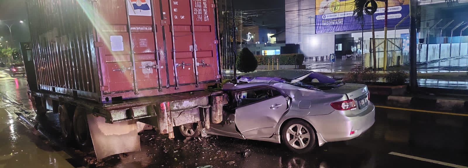 SHI.ID|PALEMBANG – Diduga mengantuk sebuah mobil Toyota Altis menabrak mobil kontiner yang parkir akibat pecah ban belakang hingga mengakibatkan mobil masuk ke bawah bak mobil kontiner di Jalan Basuki Rahmat, tepatnya depan rumah dokter Win, Kecamatan Kemuning Palembang, Jumat (5/11/2021) sekitar pukul 02.00 WIB.