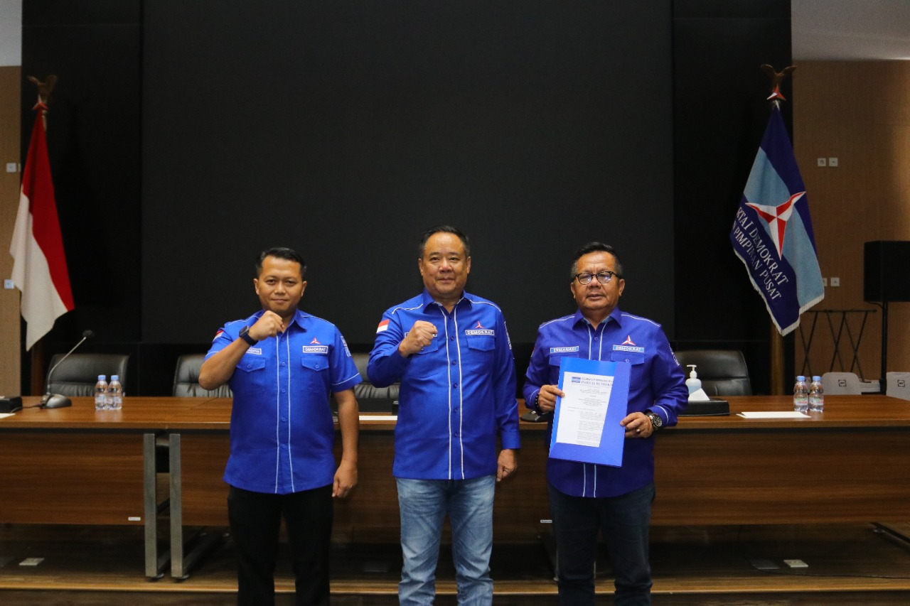 SHI.ID|MUARA ENIM – Ermanadi terima Surat Keputusan (SK) selaku Ketua Dewan Pimpinan Cabang (DPC) Partai Demokrat Kabupaten Muara Enim masa Bhakti 2022-2027 dari Dewan Pimpinan Pusat (DPP) Partai Demokrat. SK diserahkan oleh Direktur Eksekutif DPP Partai Demokrat, Sigit Raditya didampingi Ketua DPD Partai Demokrat Sumatera Selatan (Sumsel) Cik Ujang.