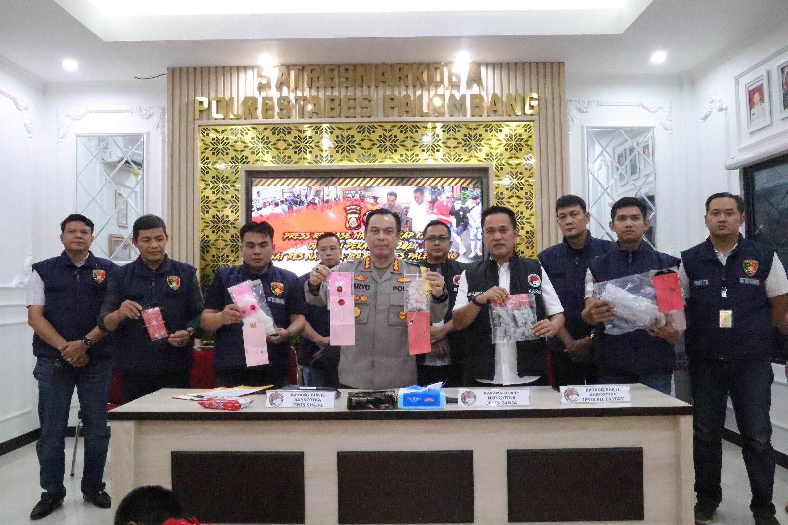 Keseluruhan barang bukti yang berhasil disita jajaran Polrestabes Palembang kurun waktu operasi pekat 2024 yakni 585,60 gram shabu, 77 butir ekstasi, dan 200 gram ganja.