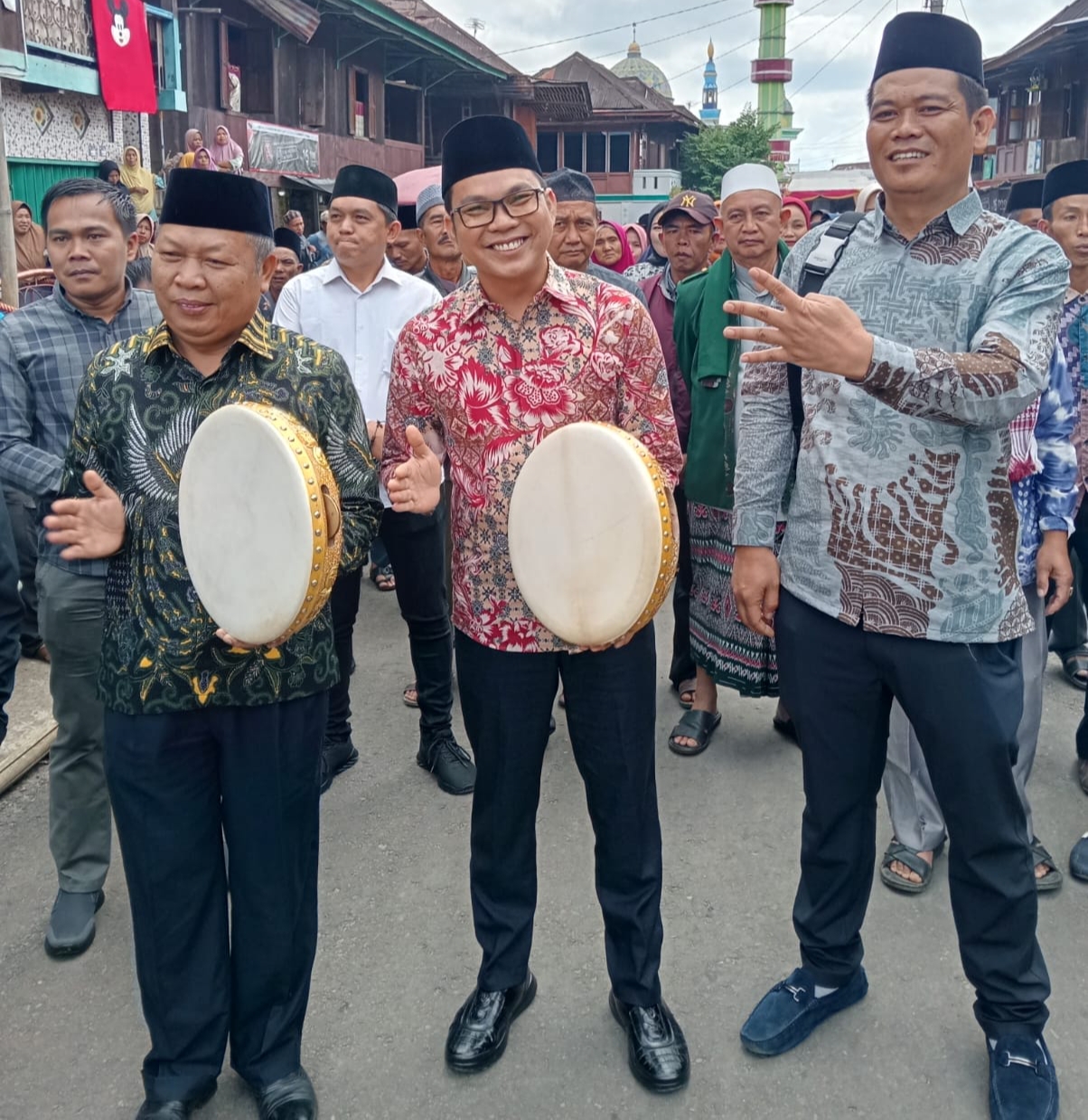 Rahol dan Ropi sempat Ikut menabuh gendang Rebana yang menjadi ciri khas dalam menyambut tamu maupun ciri khas kegiatan religi lainnya, dan tidak canggung -canggung Ramlan -Ropi bersama masyarakat membaur dengan ikut membunyikan Rebana hingga suasana semakin semarak.