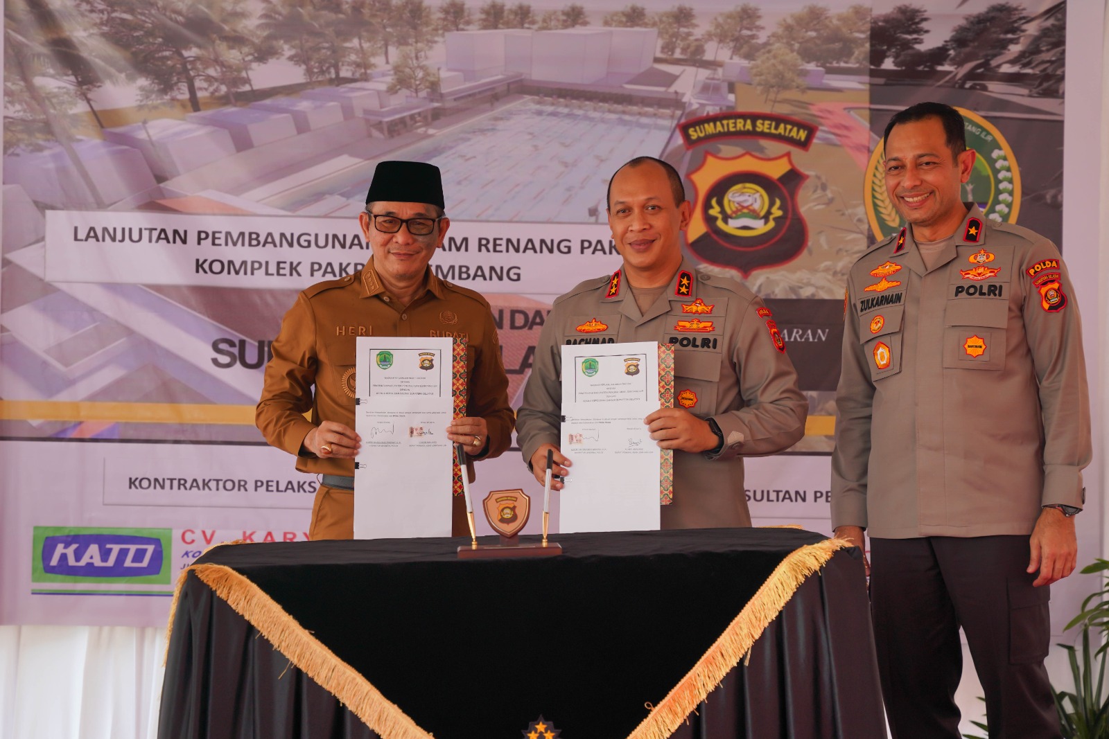 Peletakan batu pertama pembangunan kolam renang ini dilakukan langsung oleh Bupati PALI Dr Ir H Heri Amalindo,MM yang didampingi Kapolda Sumsel Irjen Pol A Rachmad, dan untuk dana yang digunakan dana hibah dari pemerintah Kabupaten PALI.