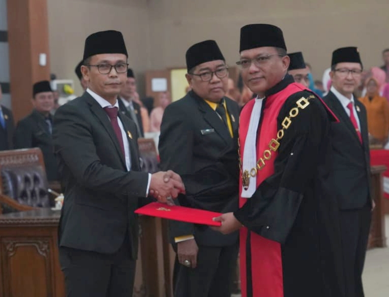 Ia yang telah diambil sumpah dan janji oleh Pengadilan Negeri Muara Enim pada Rapat Paripurna DPRD Kabupaten Muara Enim dan dihadiri langsung oleh Pj. Bupati Muara Enim, H. Henky Putrawan, S.Pt., M.Si., M.M., Rabu (16/10/2024).