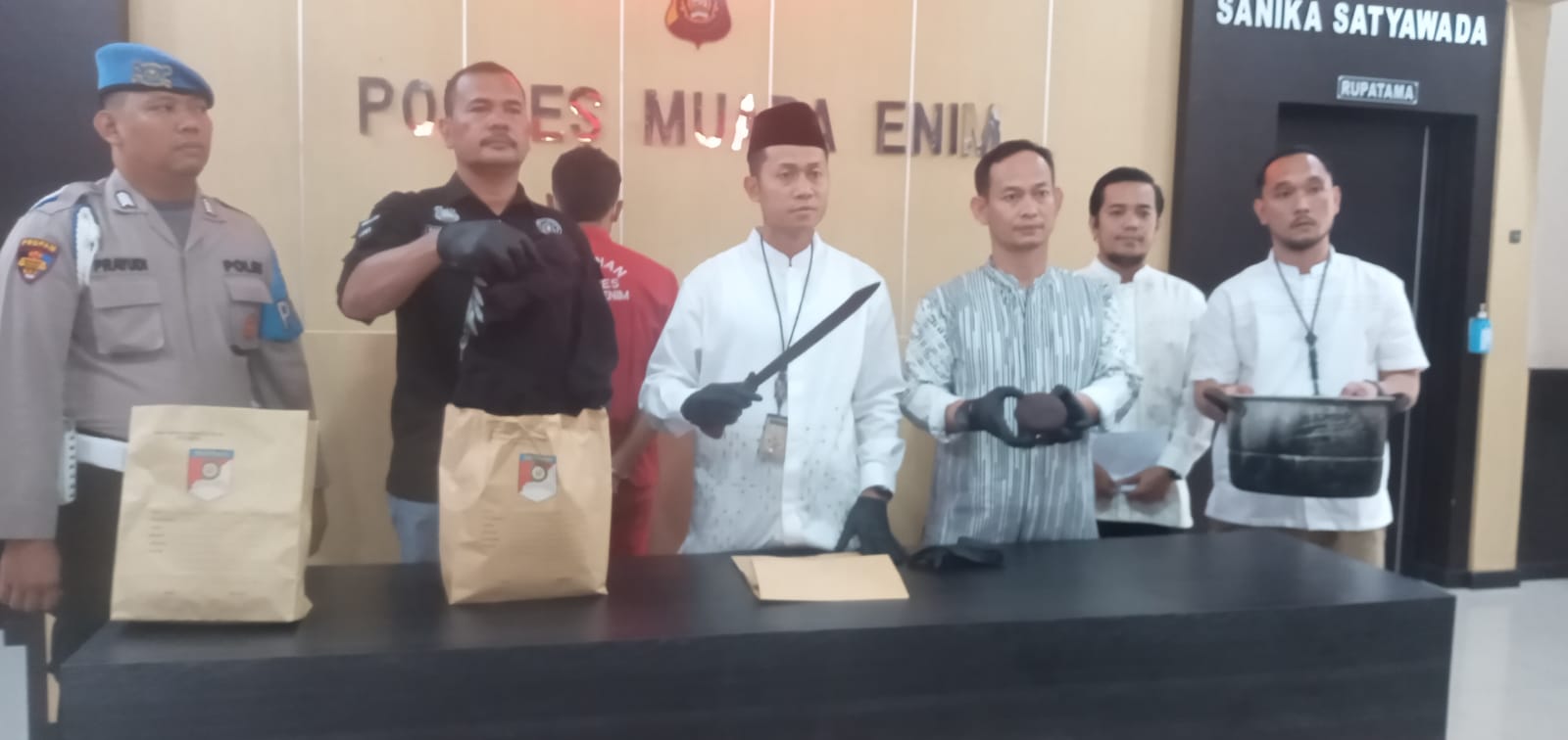 Kapolres Muara Enim, AKBP Andi Supriadi SIK SH MH di dampingi Kasat Reskrim AKP Toni Suputra mengatakan, penangkapan tersangka dilakukan kurang dari 12 jam setelah melakukan penyelidikan atas penemuan sesosok mayat di jalan pramuka lorong PGRI di Rumah kosong No 46 RT 001 RW 004 kelurahan pasar III Kecamatan Muara Enim.