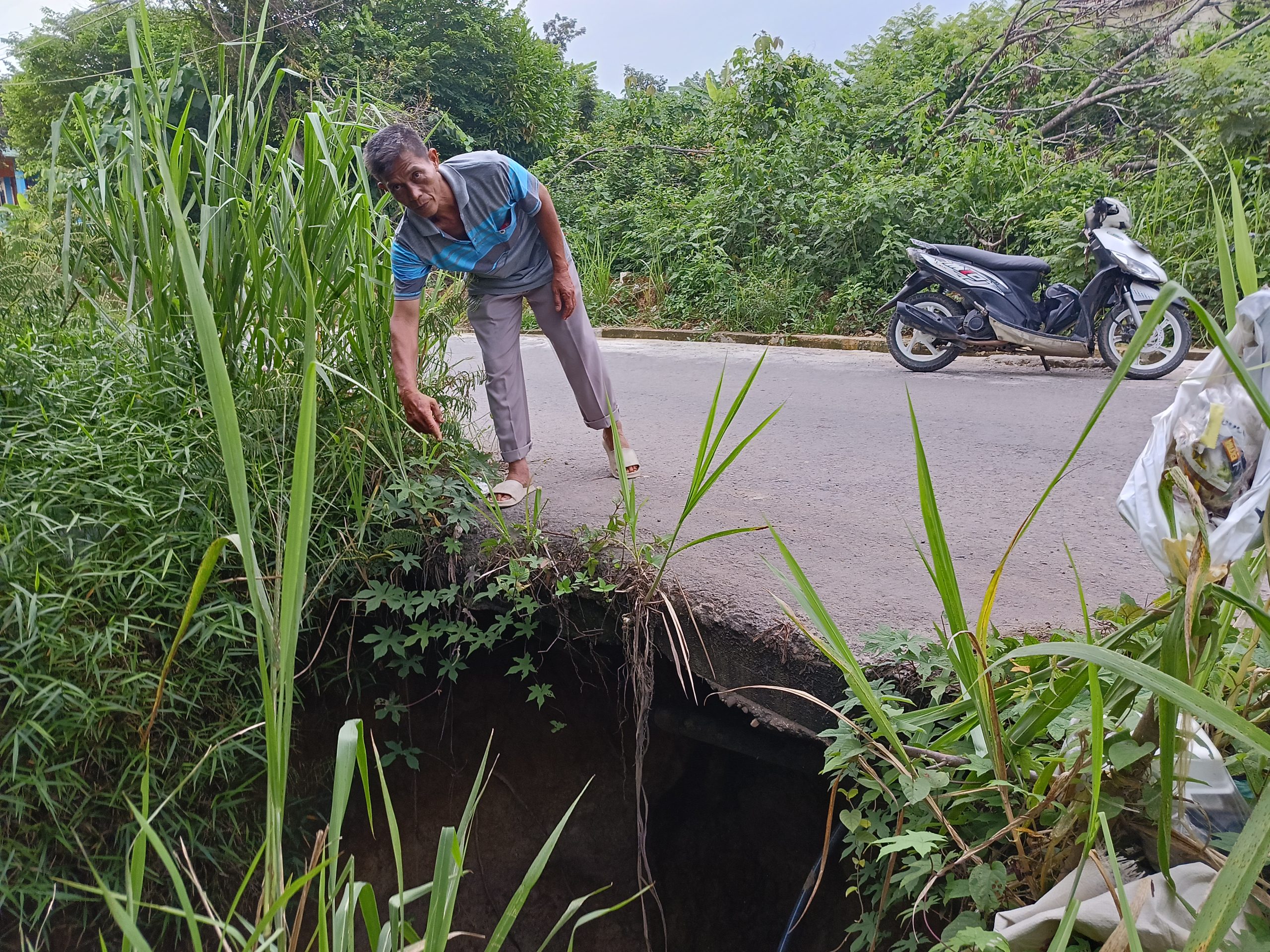 “Kami sebagian warga sudah mengetahui dan berharap agar pihak dinas terkait untuk segera memperbaiki, sebelum memakan korban jika sewaktu-waktu jalan tiba-tiba patah saat dilalui warga,” tuturnya.