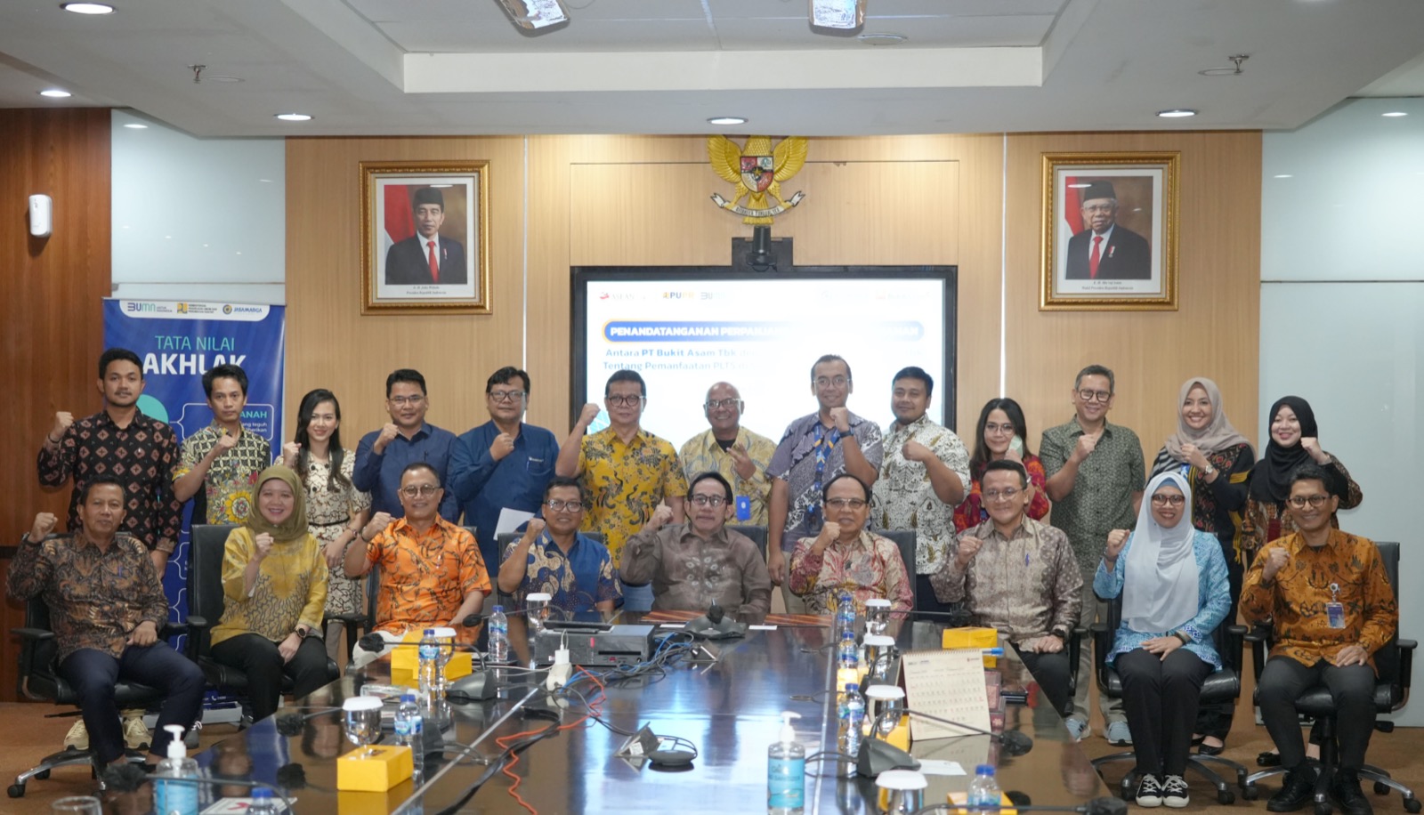 Penandatanganan dilakukan oleh Direktur Utama Jasa Marga Subakti Syukur dan Direktur Utama PTBA Arsal Ismail di Kantor Pusat Jasa Marga, Plaza Tol Taman Mini, Jakarta Timur pada Jumat (24/2/2023). Turut hadir jajaran Direksi Jasa Marga, antara lain Direktur Bisnis Reza Febriano, Direktur Operasi Fitri Wiyanti dan Direktur Human Capital & Transformasi Bagus Cahya Arinta B. Serta Direksi PTBA, antara lain Direktur Pengembangan Usaha Rafli Yandra, Direktur Operasi dan Produksi Suhedi, Direktur Keuangan dan Manajemen Risiko Farida Thamrin dan Direktur Sumber Daya Manusia Suherman.