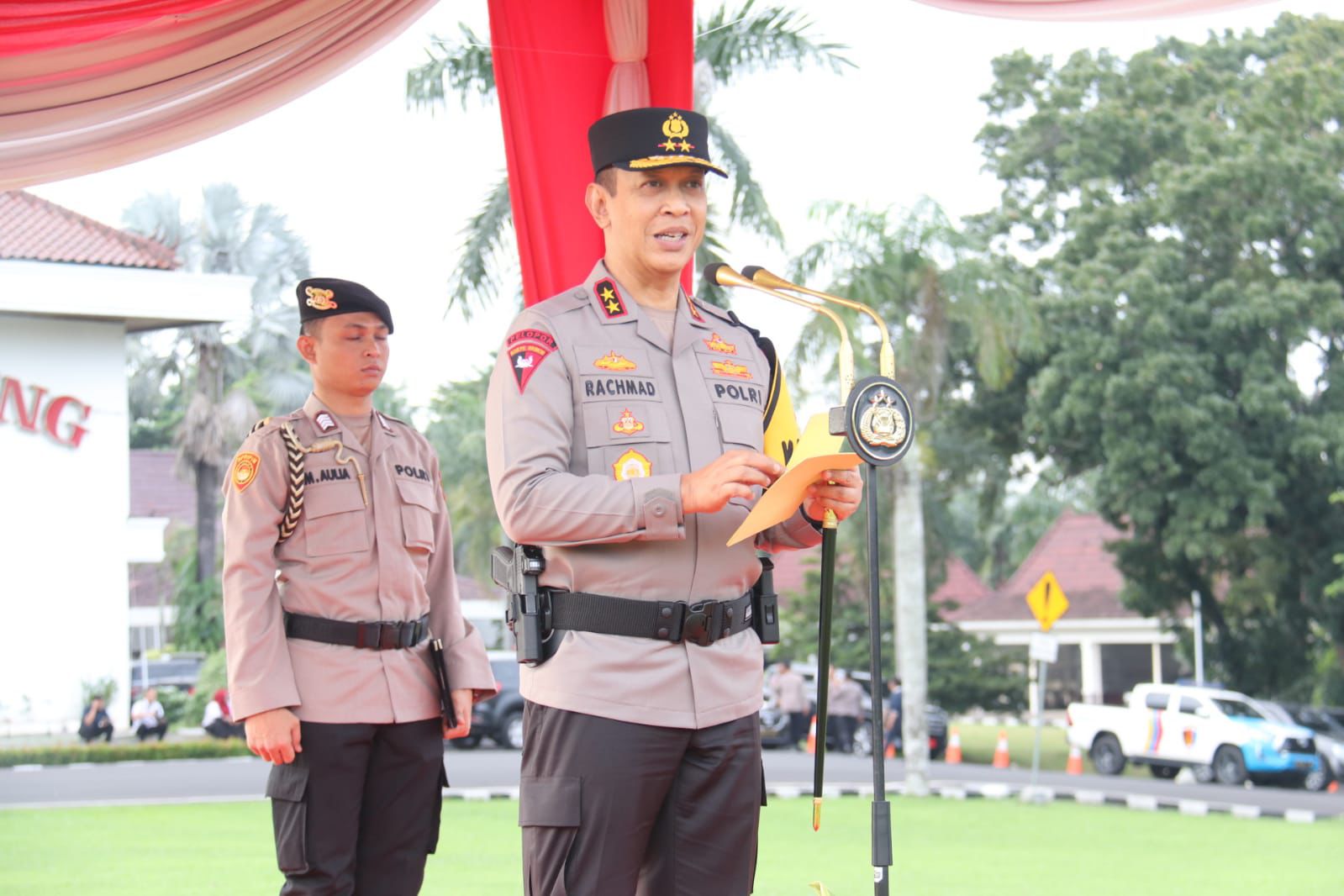 Sumsel hari ini.id – Usai memimpin rapat koordinasi lintas sektoral pengamanan lebaran, Kapolda Sumsel Irjen A Rachmad Wibowo memimpin apel gelar pasukan personel pengamanan operasi Ketupat Musi 2024, pengamanan mudik lebaran 1445 H, dihalaman Griya Agung Palembang Rabu (3/4/2024).