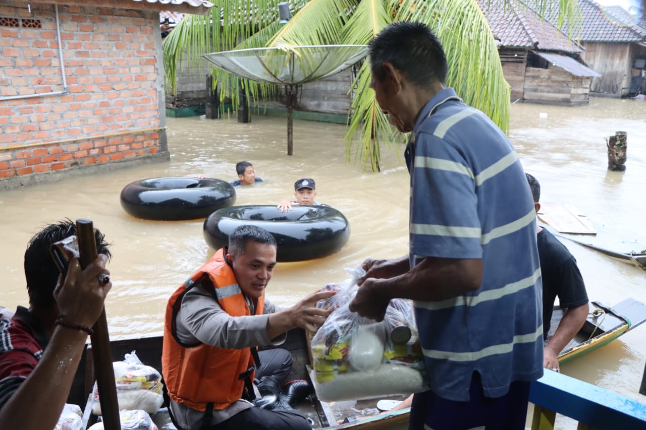 Inisiatif Kapolres Muara Enim AKBP Jhoni Eka Putra, SH, SIK, MM patut diacungi jempol untuk turun langsung ke lokasi banjir dan membantu warga yang terdampak kesulitan di tengah bencana banjir yang tergenang hingga saat ini di Desa Kuripan Kecamatan Empat Petulai Dangku Kabupaten Muara Enim Provinsi Sumatera Selatan, Rabu (17/1/24)