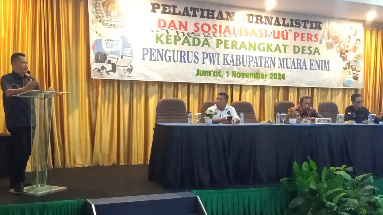 Sumsel hari ini.id – PWI Muara Enim menggelar kegiatan pelatihan Jurnalistik dan UU Pers bagi perangkat desa di Ballroom Hotel Griya Serasan Sekundang Muara Enim, Jumat (1/10/2024). Pelatihan ini diikuti 100 peserta yang merupakan perangkat desa, kepala dusun dan anggota Badan Permusyawaratan Desa (BPD).