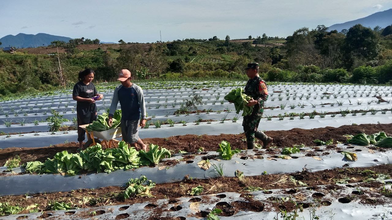 SHI.ID|MUARA ENIM – Koramil 404-06/Semendo melalui Babinsa ramil 404-06/Semendo melaksanakan giat membantu masyarakat desa binaan panen sayur di Desa Datar Lebar, Kecamatan Semende Darat Ulu (SDU), Kabupaten Muara Enim, Sumsel, pada Selasa (10/1/2023).