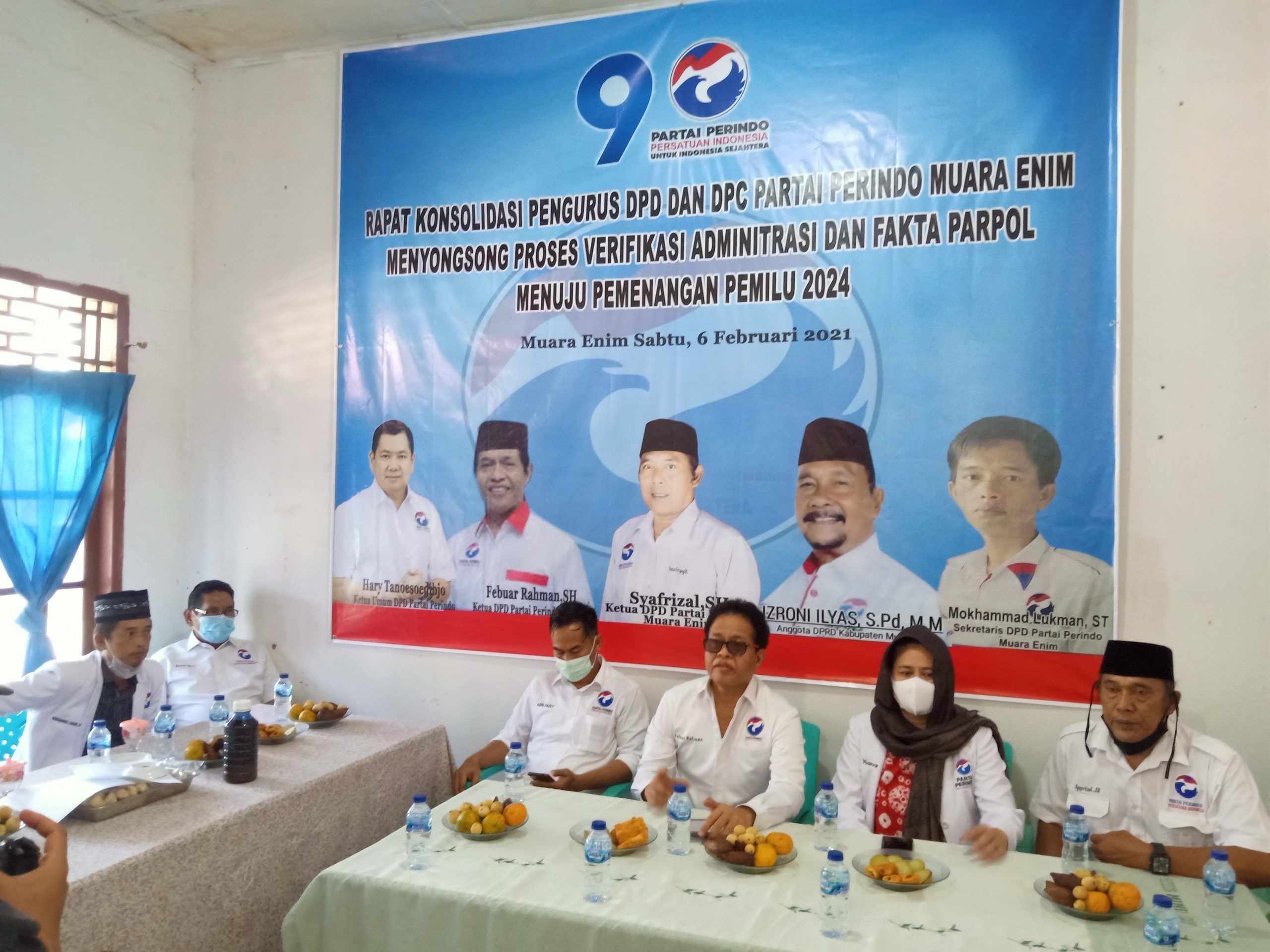 SHI.ID| MUARA ENIM – Kegiatan Konsolidasi Pengurus DPD dan DPC Partai Persatuan Indonesia (Perindo) Muara Enim, kali ini digelar dengan tema “Menyongsong Proses Verifikasi Administrasi dan Fakta Parpol Menuju Pemenangan Pemilu 2024”. Kegiatan ini dihelat di Kantor Partai Perindo Kabupaten Muara Enim, pada Sabtu (6/2/2021) dengan tetap mematuhi Prokes Covid 19.