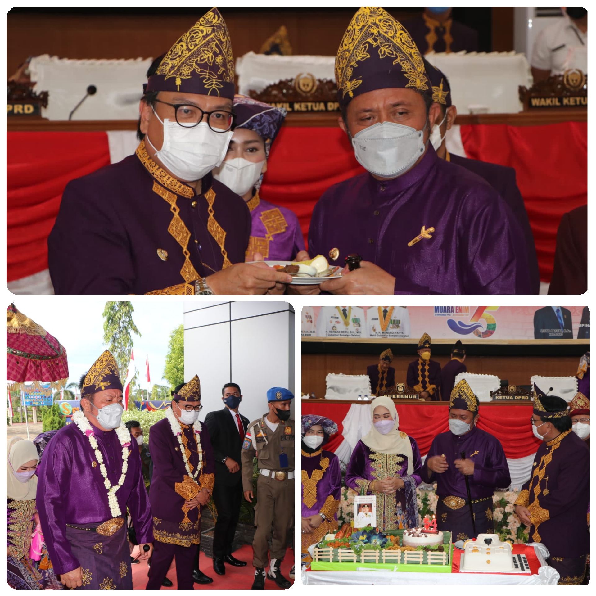 SHI.ID| MUARA ENIM – Dalam rangka Hari Ulang Tahun (HUT) Kabupaten Muara Enim ke 75 tahun. DPRD Kabupaten Muara Enim dan Pemerintah Kabupaten Muara Enim menggelar Kegiatan Sidang Paripurna Istimewa, yang dihelat di Gedung DPRD Kabupaten Muara Enim, Sabtu (20/11/2021).
