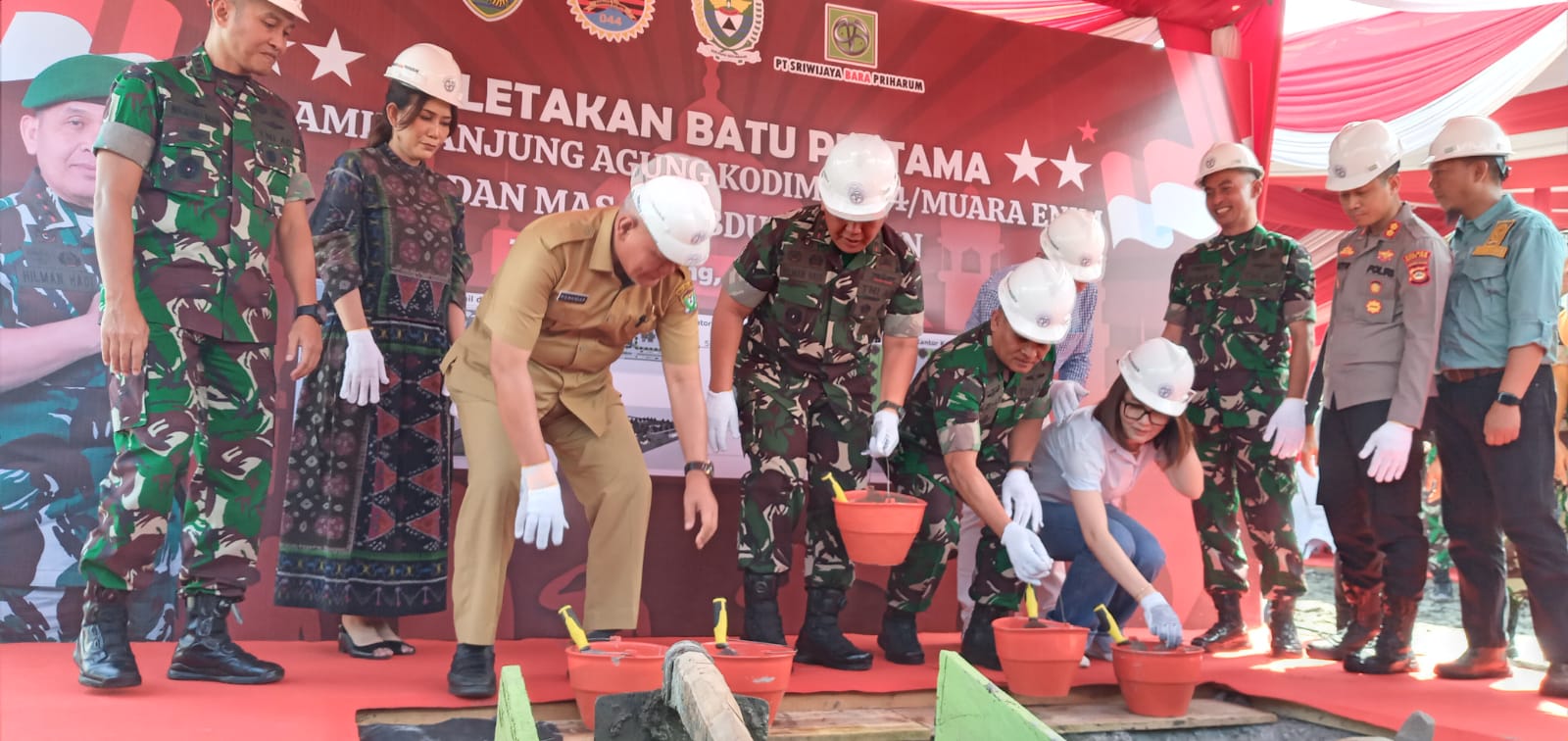 Dalam Kunker tersebut, Pangdam II/Swj didampingi Pj Sekda Muara Enim, Dandim 0404/Muara Enim Letkol Arh Rimba Anwar, Forkopimda Kabupaten Muara Enim serta Komisaris PT Sriwijaya Bara Priharum (PT SBP) Datuk Saminjo Arief S Sugondo melakukan peletakan batu pertama pembangunan Pos Persiapan Koramil (Posramil) Tanjung Agung di jajaran Kodim 0404/Muara Enim dan Masjid Abdurachman yang berlokasi di Desa Penyandingan Kecamatan Tanjung Agung, Selasa (21/03).