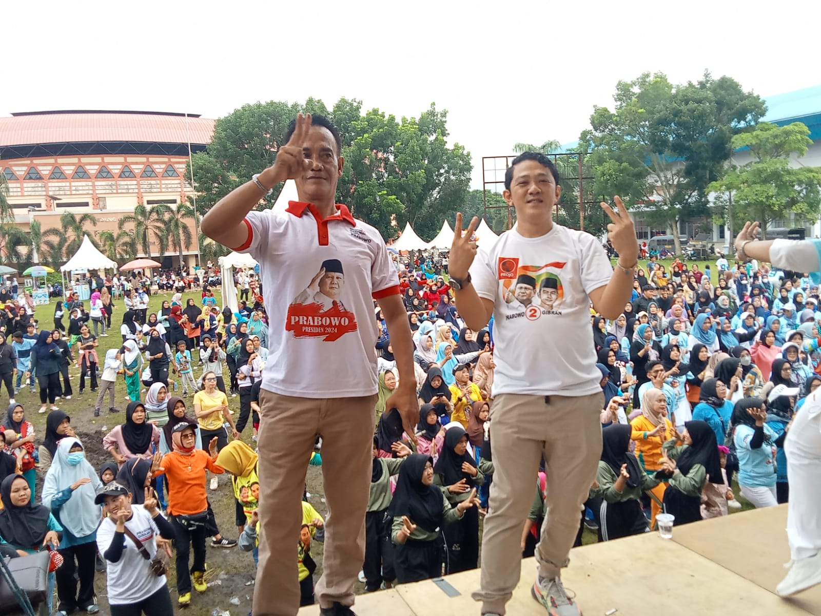 Sumsel hari ini.id – Pendukung Prabowo – Gibran padati Halaman GOR Pancasila Muara Enim dalam acara senam sehat gemoy yang di gelar oleh DPC Projo Muara Enim BKD Prabowo Gibran Muara Enim Gerakan Nasional Cinta Prabowo (GNCP) Muara Enim dan sanggar mak Paula yang digelar, Sabtu (10/02/2024).