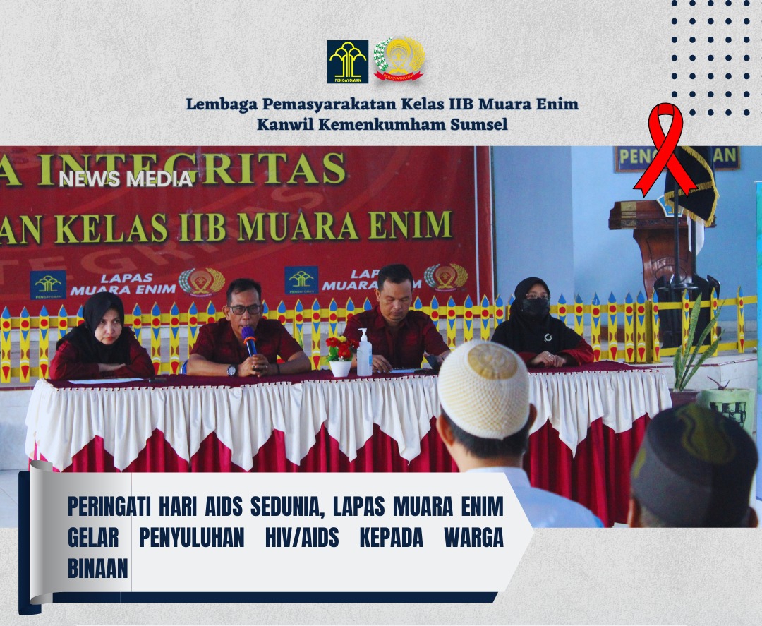 Sumsel hari ini.id – Dalam momen peringatan Hari AIDS Sedunia, Lapas Muara Enim menggelar kegiatan penyuluhan mengenai HIV/AIDS bagi para Warga Binaan. Acara yang berlangsung pada Sabtu (02/11/2023) ini bertujuan untuk memberikan pemahaman tentang bahaya dan langkah-langkah pencegahan terhadap virus HIV.