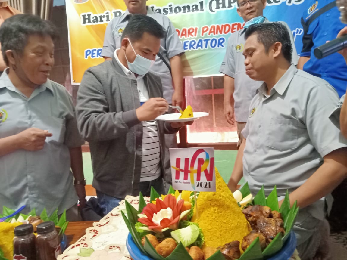 SHI.ID|MUARA ENIM – Dalam rangka memperingati dan memeriahkan Hari Pers Nasional (HPN) yang ke 75. Persatuan Wartawan Indonesia (PWI) Kabupaten Muara Enim menggelar syukuran secara sederhana. Syukuran tersebut dihelat di Sekretariat PWI Kabulaten Muara Enim, yang bertempat di Jalan SMB II, pada Minggu (14/2/2021).