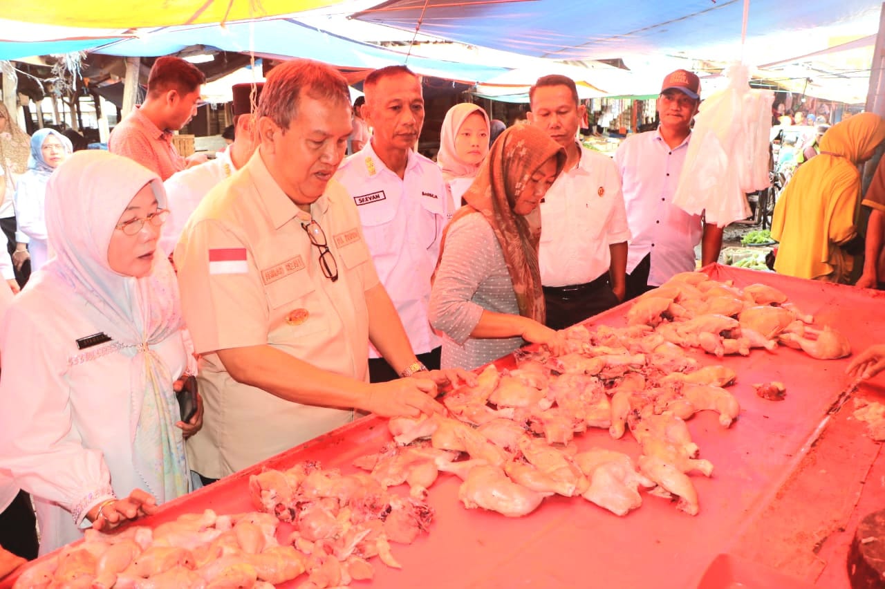 Didampingi Kepala Dinas Ketahanan Pangan, Ir. Syamsiah, M.Si., Pj. Bupati mendapati sejumlah pangan yang dijual seperti beras, daging, telur dan minyak goreng terpantau masih harga normal dan terkendali serta dengan pasokan relatif cukup.