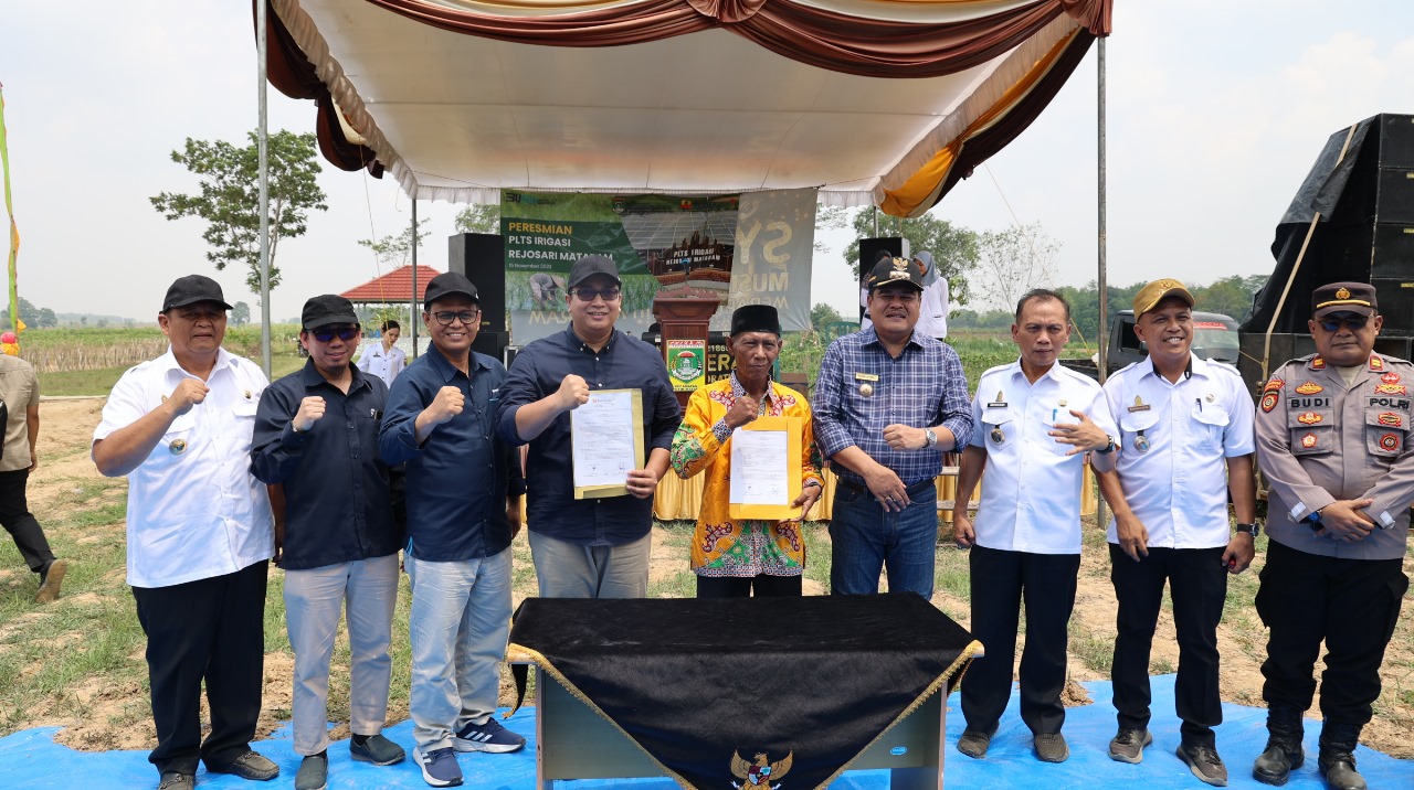 Sumsel hari ini.id – Pembangkit Listrik Tenaga Surya (PLTS) untuk irigasi lahan pertanian di Kampung Rejosari Mataram, Kecamatan Seputih Mataram, Kabupaten Lampung Tengah diresmikan oleh Bupati Lampung Tengah Musa Ahmad dan VP Sustainability PT Bukit Asam Tbk (PTBA) Hartono pada Rabu (15/11/2023).