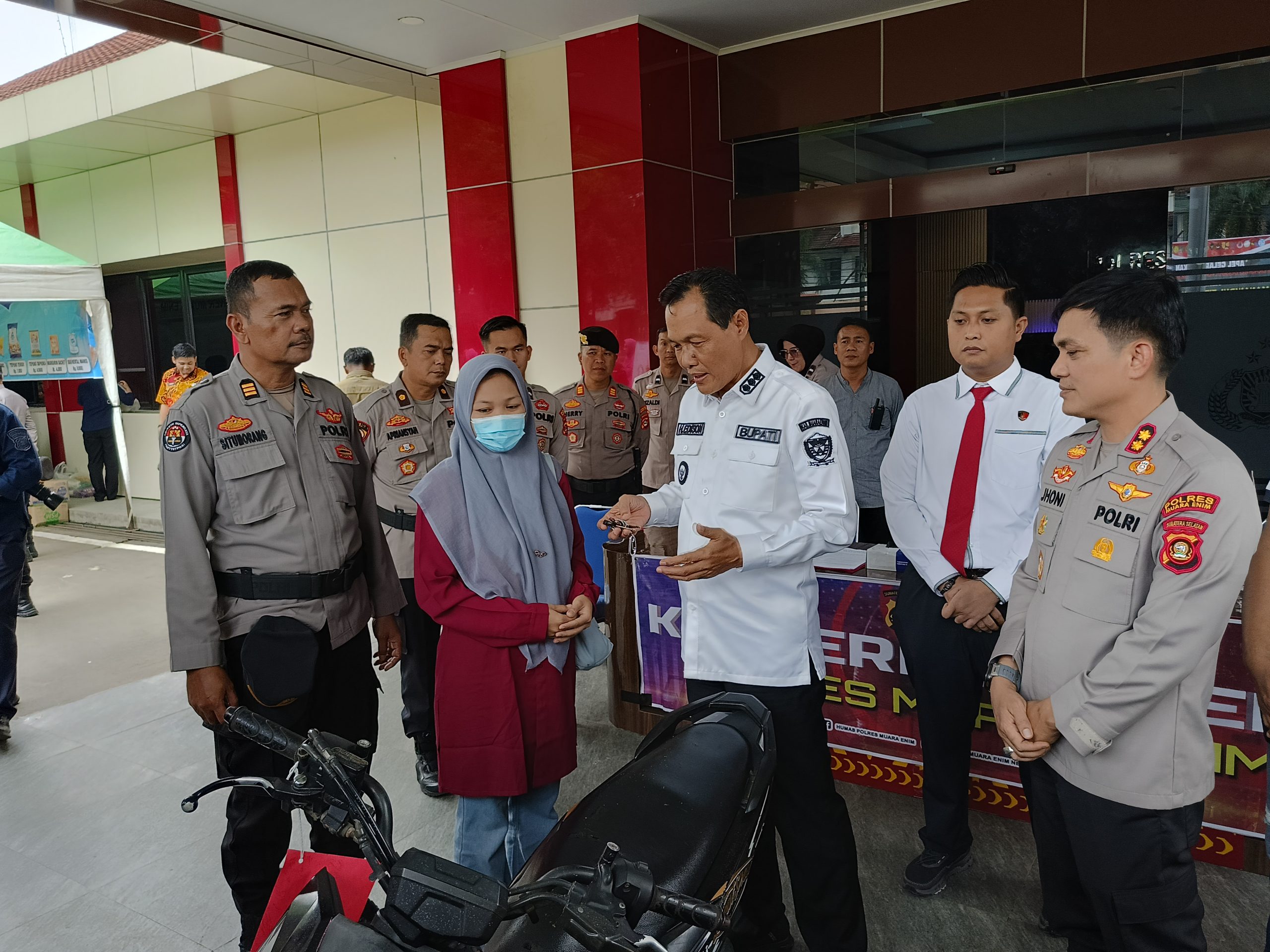 Momen pengembalian kendaaran motor roda dua ini dilakukan secara langsung oleh Kapolres Muara Enim didampingi Bupati Muara Enim dan Kasat Reskrim Polres Muara Enim.