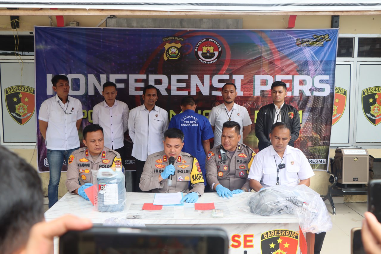 Konferensi Pers tersebut dipimpin langsung oleh Kapolres Muara Enim, AKBP Jhoni Eka Putra, SH, SIK, MSi, yang didampingi oleh Wakapolres Muara Enim, Kompol Roy Arpian Tambunan, SP. SIK, Kabag Ops, Kompol Toni Arman, SH, Kasat Reskrim, AKP Darmanson, SH, MH, Kasi Humas, AKP RTM Situmorang, dan Kanit Pidsus, Ipda Zakwan Rifqi, STrK, Rabu (24/4/24).