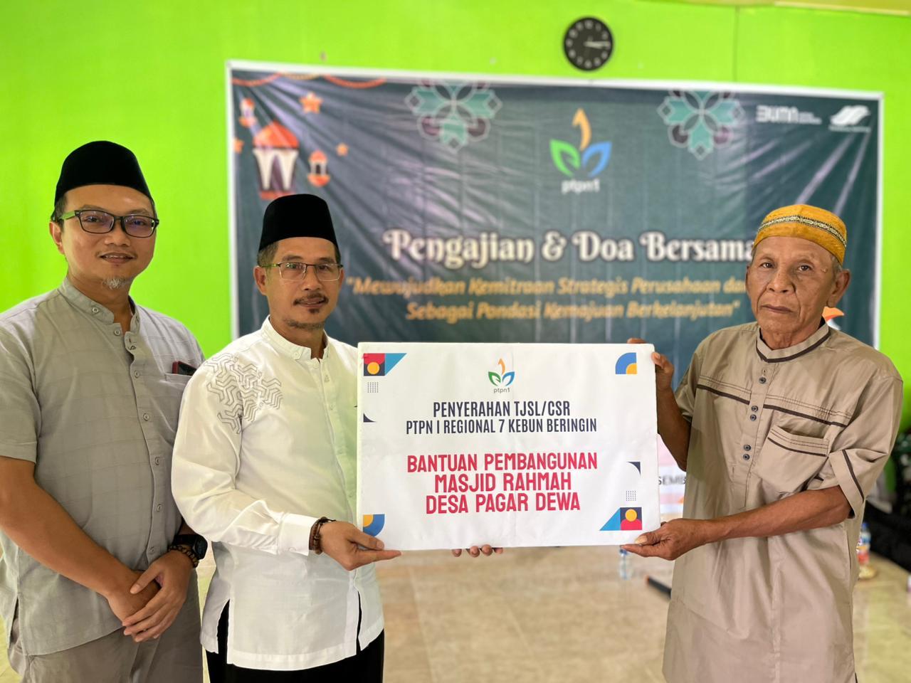 Didalam kegiatan pengajian dan doa bersama, PTPN I Regional 7 Kebun Beringin juga merealisasikan CSR kepada beberapa desa sekitar diantaranya Bantuan Renovasi Masjid Nurul Huda Desa Sumber Mulya, Bantuan Pembangunan Masjid Rahmah Desa Pagar Dewa.