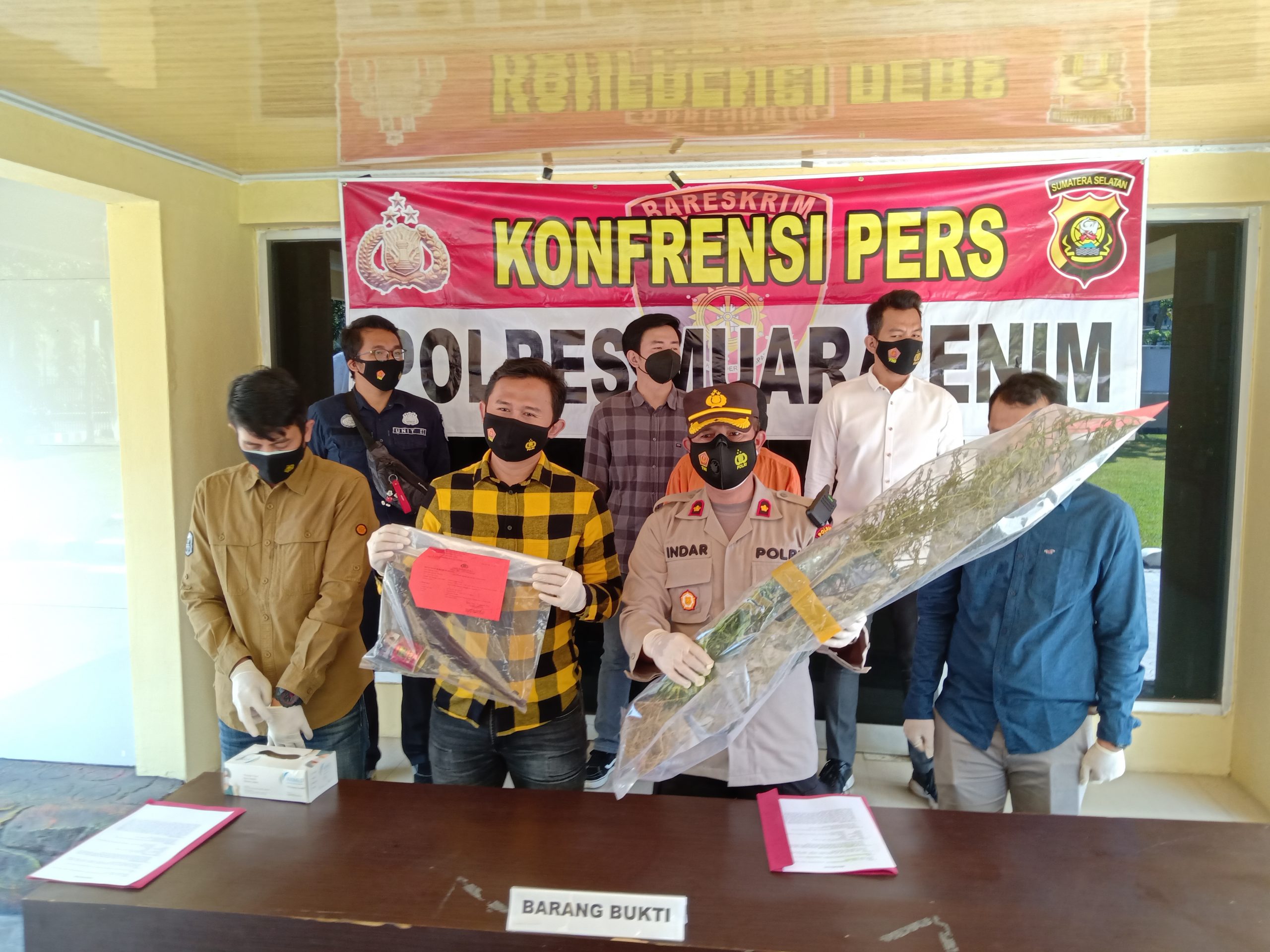 SHI.ID|MUARA ENIM – Satuan Res Narkoba Polres Muara Enim bersama Polsek Lawang Kidul kembali berhasil mengamankan satu dari dua pelaku petani ganja asal Desa Karang Asam, Kelurahan Tanjung Enim Selatan, Kecamatan Lawang Kidul, Kabupaten Muara Enim, Sumsel. Dan dari hasil pengerebakan tersebut polisi berhasil mengamankan 22 batang ganja siap panen, pada Kamis (12/8/2021).