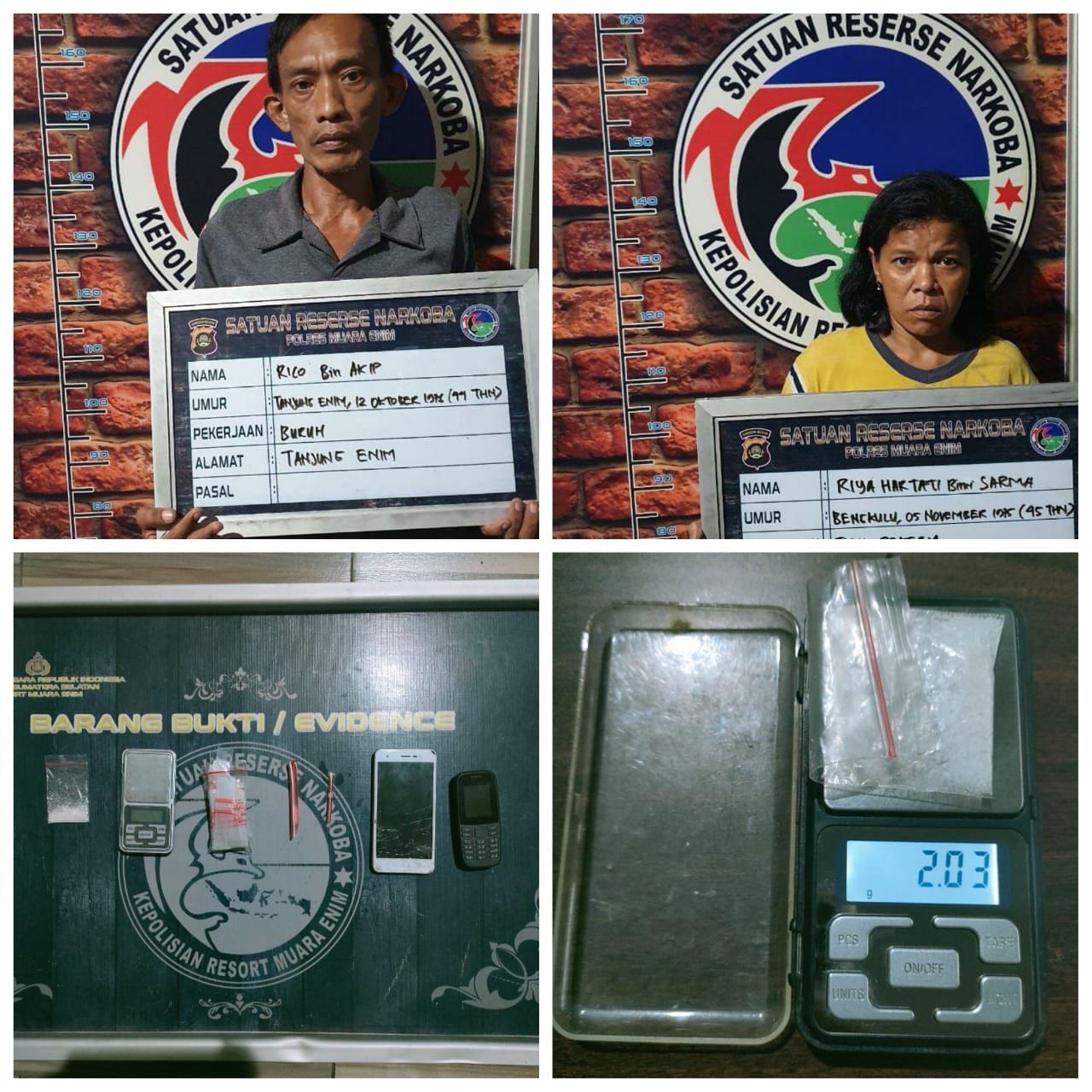 Kapolres Muara Enim AKBP Danny Sianipar S.I.K melalui Kasat Res Narkoba Polres Muara Enim IPTU Rahmad Aji Prabowo, S.Ik., M.Si membenarkan penangkapan tersebut dan mengatakan kedua pelaku sekarang sudah berada di Sat Res Narkoba Polres Muara Enim.