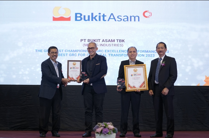 Sumsel hari ini.id – PT Bukit Asam Tbk (PTBA), anggota Grup MIND ID, berhasil memperoleh 4 penghargaan dalam ajang GRC & Exellence Award 2023. Keempat penghargaan tersebut, antara lain The Greatest Champions of GRC Exellence Performance 2023, The Best GRC for IT/Digital Transformation, The Best CEO for GRC Exellence 2023 untuk Direktur Utama PT Bukit Asam Tbk Arsal Ismail, serta The Best GRC Women Leader 2023 untuk Direktur Keuangan & Manajemen Risiko PT Bukit Asam Tbk Farida Thamrin.