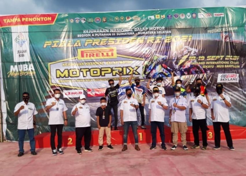 SHI.ID|MUARA ENIM – Patut berbangga bagi masyarakat kabupaten Muaraenim pada atlit cabang olaraga balap motor binaan dari Korwil Ikatan Motor Indonesia (IMI) Muara Enim dan KONI Muara Enim. Soalnya, 3 atlit balap Motor Kabupaten Muara Enim dominasi juarai podium di Kejurnas piala Presiden Region A Sumatra 2021 di Sirkuit Skyland Kabupaten Muba, Senin (20/9/2021).