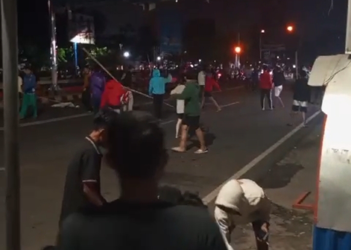 Seperti video viral yang diposting berdurasi kurang lebih 30 detik ini, terlihat dua kubu pemuda dari serang dari arah berlawanan. Ada yang membawa celurit panjang, ada juga membawa bambu, dan ada juta yang membawa kayu, sert kedua kubu gerombolan pemuda ini saling lempar batu.