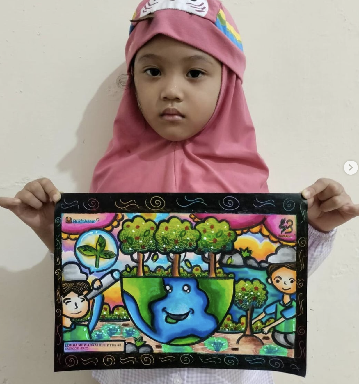 Salah satu orang tua dari pemenang kategori PAUD, Ibu dari Rumaisha menyambut dengan baik perlombaan ini dengan mempersiapkan peralatan dan mencari tahu tentang tema yang diusung pada HUT PTBA ke-43.