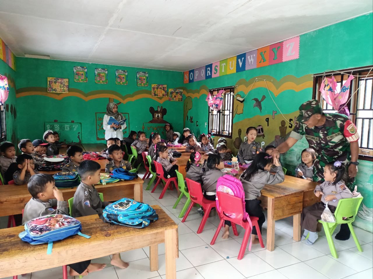 SHI.ID|MUARA ENIM – Koramil 404-06/Semendo melalui Babinsaramil 404-06/Semendo Sertu Buyung melaksanakan Wawasan Kebangsaan (Wasbang) di PAUD Mekar Oleo, Desa Segamit, Kecamatan, Semende Darat Ulu (SDU), pada Selasa (13/12/2022).