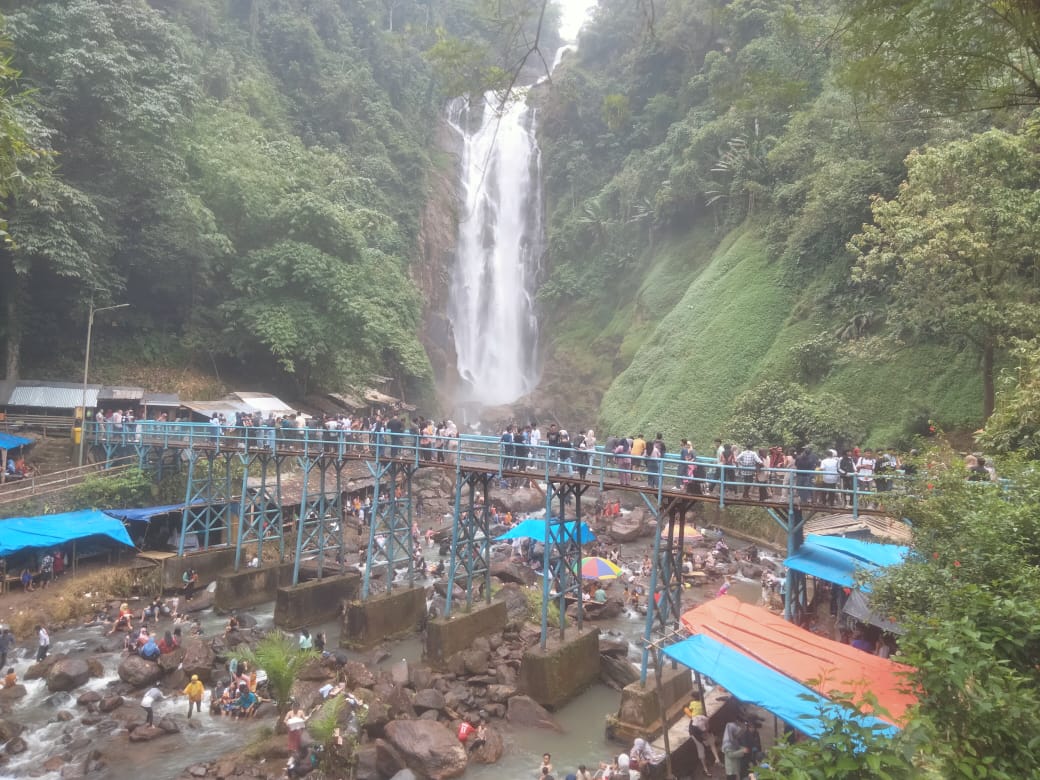 Pantauan di lapangan menunjukkan arus kendaraan roda dua (R2), roda empat (R4), terus berdatangan. Aktivitas pengunjung meningkat, mulai dari berswafoto, bermain air, hingga bersantai di sekitar kawasan air terjun.