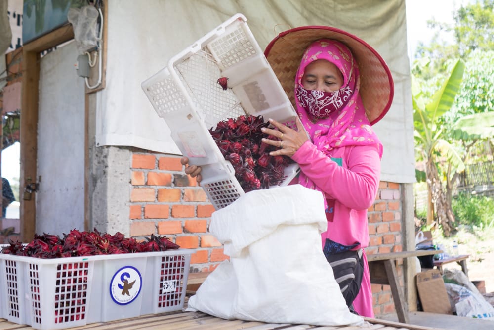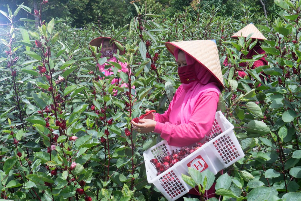Sumsel hari ini.id– Sambil duduk merumpi, sekumpulan ibu rumah tangga mengupas kelopak bunga rosella dengan cekatan. Mereka kemudian mencuci dan mengeringkan kelopak-kelopak bunga tersebut. Kelopak rosella yang sudah kering dilumat dengan blender, lalu dimasukkan ke dalam kantong teh. Jadi lah teh rosella, minuman herbal yang kaya akan vitamin C.