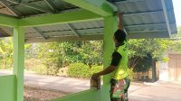 Hampir Rampung, Anggota Satgas TMMD Kodim Muara Enim Cat Poskamling II
