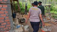 Satgas TMMD Kodim Muara Enim dan Bhabinkabtibmas Gotong Royong Bedah Rumah Warga