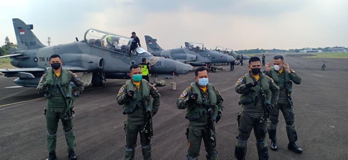 SHI.ID|PALEMBANG – Sebelas pesawat tempur F 16 dan Hawk 100/200 mendarat dengan sempurna di landasan Lanud Sri Mulyono Herlambang Palembang, meski jarak pandang berkurang akibat matahari tertutup awan Kamis (10/6/2021).