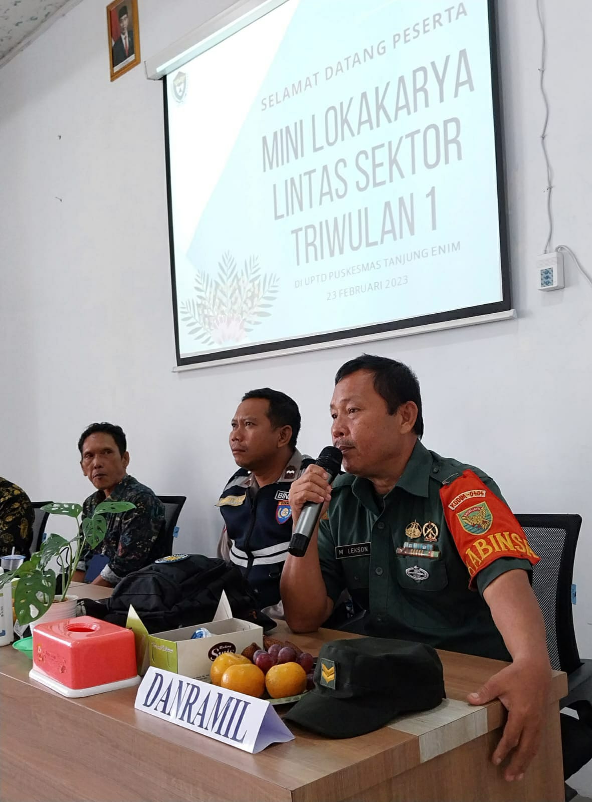 Sumselhari ini.id – Babinsa Kelurahan Pasar Tanjung Enim Koramil 404-05/Tanjung Enim hadiri MINI Lokakarya Lintas Sektor UPT Puskesmas Tanjung Enim yang dihelat di Pusksemas Tanjung Enim, pada Kamis (23/2/2023).
